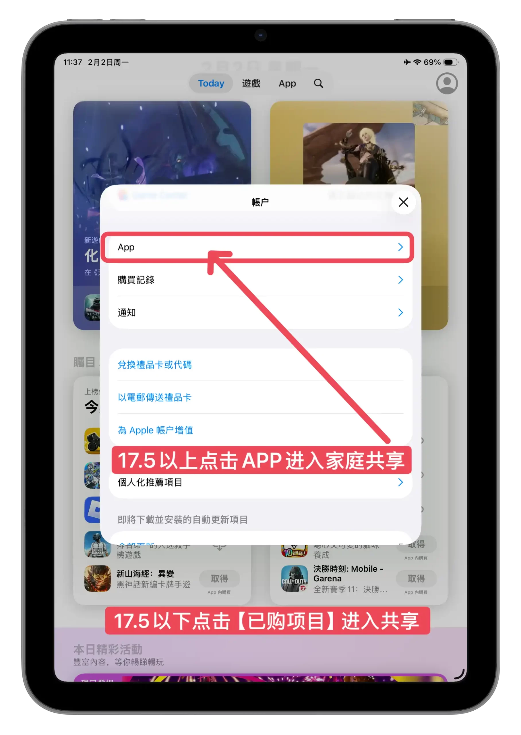 2023年起,大部分app和游戏都采用家庭共享形式下载,如果你要下载的应用没有显示已购或者需要付费,请按按照下面图片中的方式在家庭共享中按照提示点击下载即可。